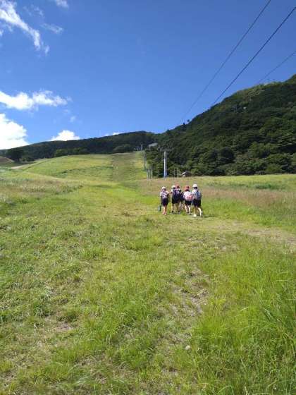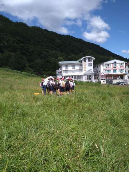 広い高原を舞台にフィールドビンゴが行われています。