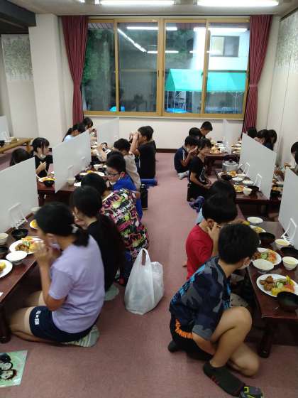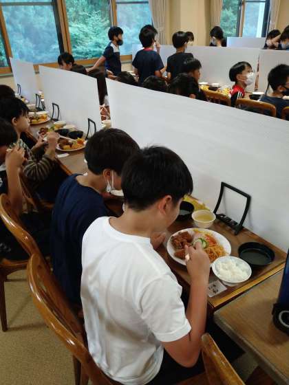 待ちに待った夕食です。みやま荘は食堂とラウンジに分かれて食べています。