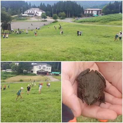 大きなカエルや、虫を運ぶアリを見つけて大喜びしています。