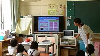 市の事業として、本年度、来年度の2年間で、全学級に60インチの大型テレビが設置される予定です。