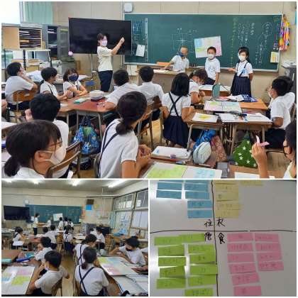 身の回りの和の文化について考えよう。 衣・食・住・その他に分類して、和の文化を書き出しています。