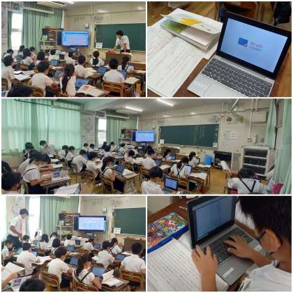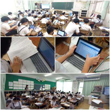 タブレット端末を使って、じんざの気持ちの変化を表しています。