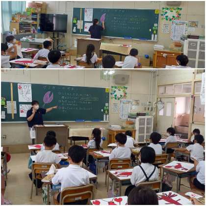 画用紙いっぱいに、生き生きとしたザリガニを描いています。