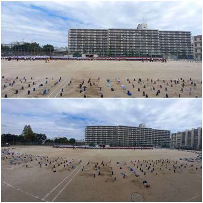3年ぶり全校一斉開催の運動会に向けて、全体練習を行いました。