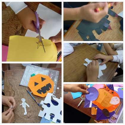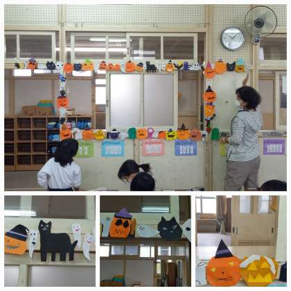 ハロウィンの飾りをつくっている子どもたちに『お菓子がもらえるね』と話しかけると、『本当は、感謝祭なんだよ』と教えてくれました。