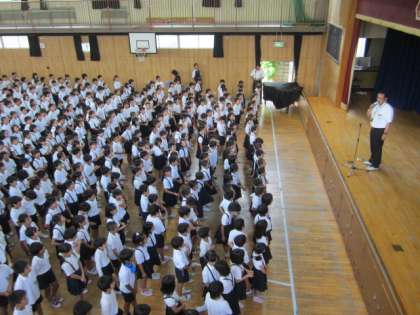 今日の終業式では、校長先生や生活指導担当の先生から、目標をもって充実した夏休みを過ごしてほしいことや「交通ルールを守る」「知らない人についていかない」「水の事故にあわないように気をつける」などの話がありました。