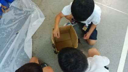 分校の休み時間、毎時間といっていいほど、廊下はカブトムシに群がる子どもたちでいっぱいになります。学級によっては、一匹一匹に名前をつけて愛おしむ子どもたちもいます。
