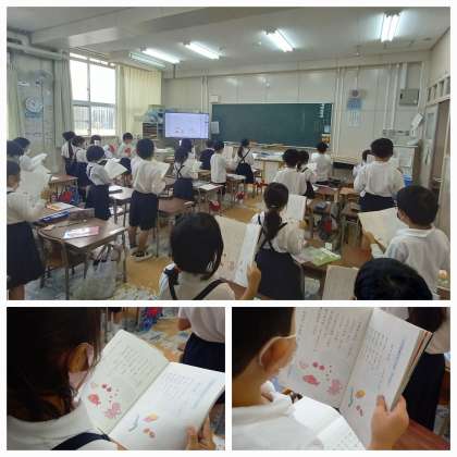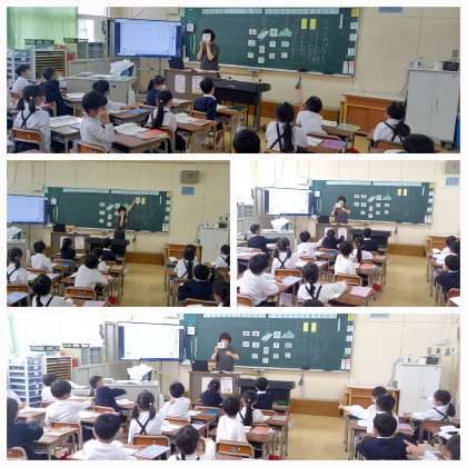 「木」「山」「口」「目」などの漢字のなりたちについて学習しています。