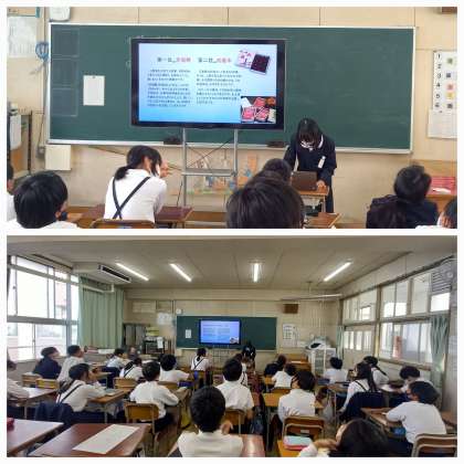 修学旅行に出かける伊勢方面について調べたことを発表し、意欲を高めています。