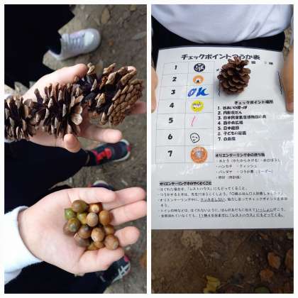 オリエンテーリングでは、7つのチェックポイントをまわり、理科クイズやジェスチャーゲーム等にチャレンジしました。