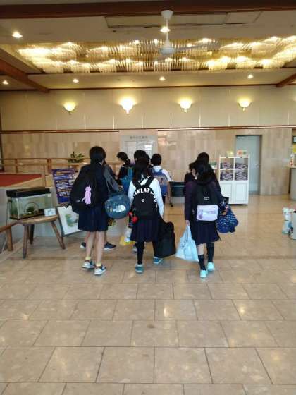 宿泊する扇芳閣さんに到着し、開舎式を行っています。