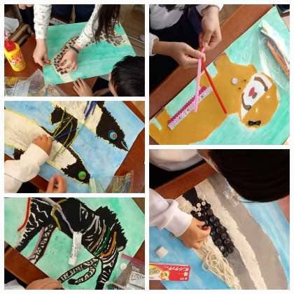 天王寺動物園で見た動物をパスで大きく描きました。