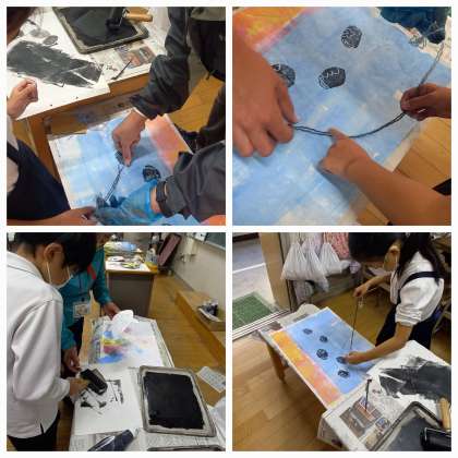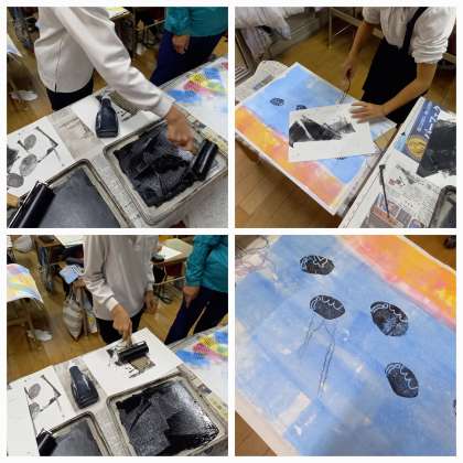 海遊館で見た海の生き物を版で表現していきます。