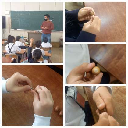 今日は、どんぐりごまづくりに挑戦です。