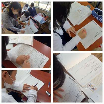 これまでにかけられた「心に残る言葉」を思い起こして伝えたい言葉を決め、伝えたい言葉が印象に残るようなスピーチをします。