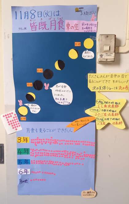 みなさんは皆既月食を観ましたか? 友渕小学校では、多くの人が観たようです。