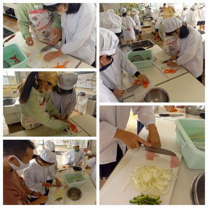 材料は、人参・ピーマン・玉ねぎ・ハムです。