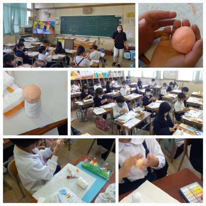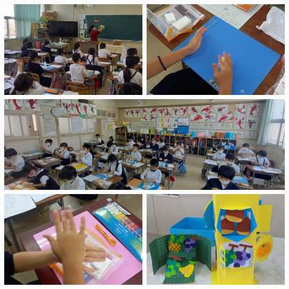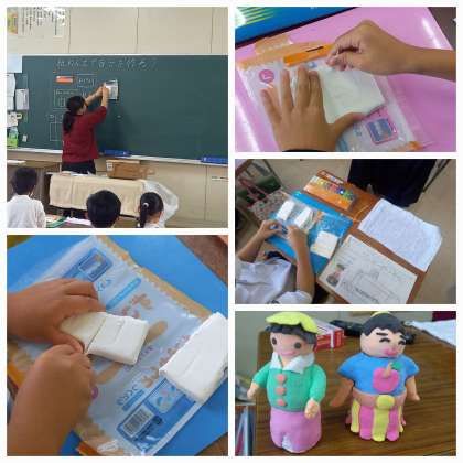 カッターナイフを使って制作している『まどからこんにちは』に、紙粘土で作った自分を登場させるようです。