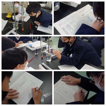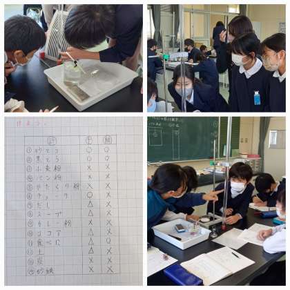 食塩、パインアメのそれぞれを水に溶かし、どのような変化が見られるのか実験しています。