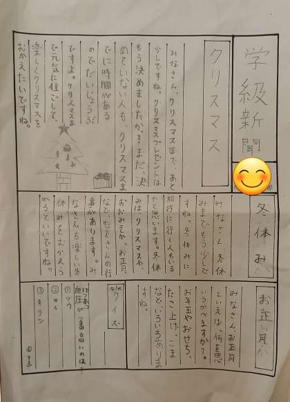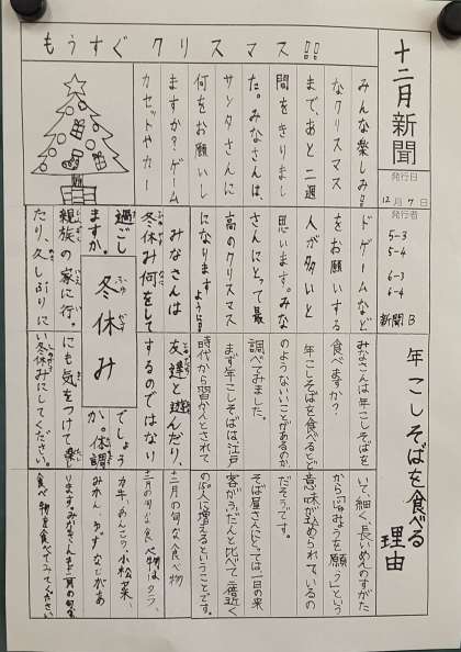新聞委員会発行の教室用壁新聞だけでなく、学級の新聞係が書いた壁新聞も掲示されています。