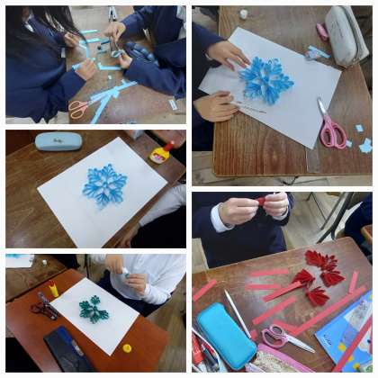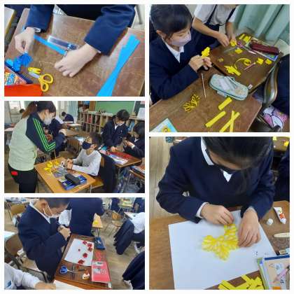色画用紙を細長く切ったものを組み合わせると、素敵な季節の飾りができあがります。