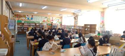 子どもたちは、思い思いに本を選び静かに読書をしています。