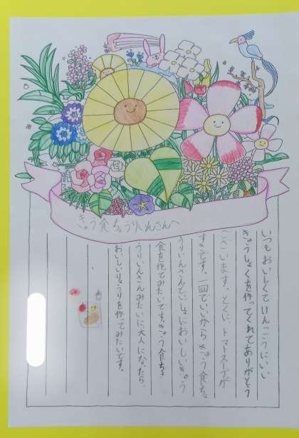 物語文「おてがみ〜ふたりはともだち〜」を学習した子どもたちは、感謝の気持ちを伝える手紙を書きました。