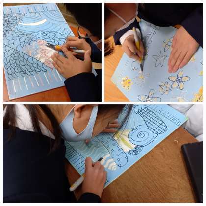 彫刻刀で、下書した線を一つずつ丁寧に彫っています。