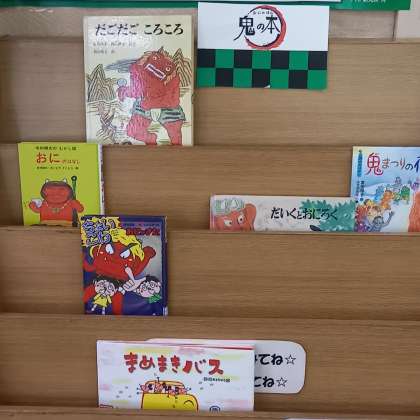 2月3日は節分でした。その節分にちなんで「オニ」の本が紹介されているコーナーがあります。