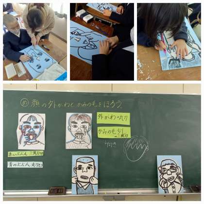 『にらめっこ』している自分を彫っています。