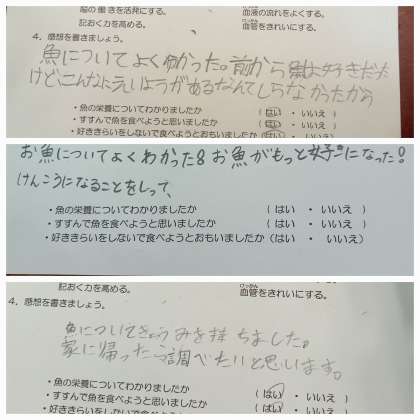 子どもたちは、魚には成長に欠かせない多くの栄養があることを知りました。