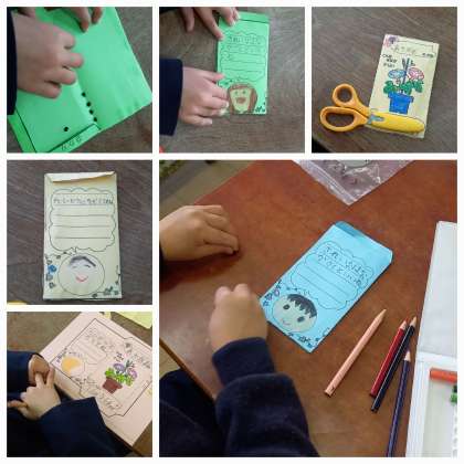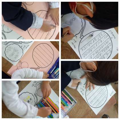 1年生が、4月に入学してくる新入生に向けて、メッセージを書いたり、アサガオの種のプレゼントを用意したりしています。