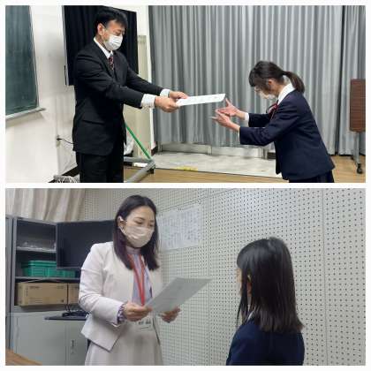 分校では2年生の代表が、副校長先生から修了証を受け取るとともに、この1年間を振り返っての思い出の作文を読みました。