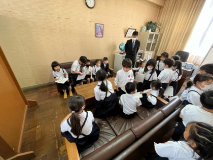 校長室では、ソファに座らせてもらい、子どもたちは