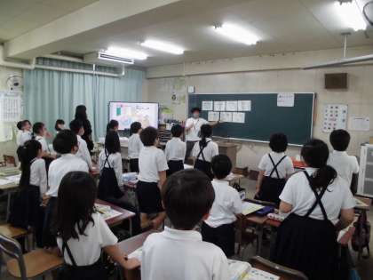 外国語活動では、「曜日の言い方を知ろう」の学習をしました。リズムに乗って体を動かしながら、曜日の言い方を繰り返し練習しました。
