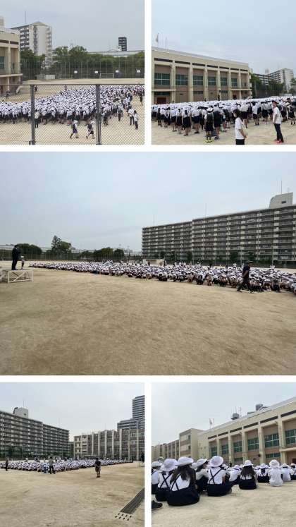 今日、久しぶりに運動場で児童朝会を行いました。子どもたちの中には、初めて外で児童朝会をする子たちもおり、予定通りに進むかなあと思っていましたが、スムーズに運動場に集合し、時間通りに朝会を始めることができました。今後も児童朝会は、月1回運動場で行います。