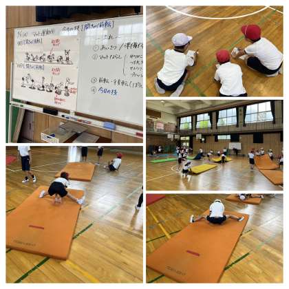 マット運動で開きゃく前転をしました。足を開くタイミングと手のつき方を意識しながら技に取り組んでいました。学習の最後のふり返りもしっかり書けました。