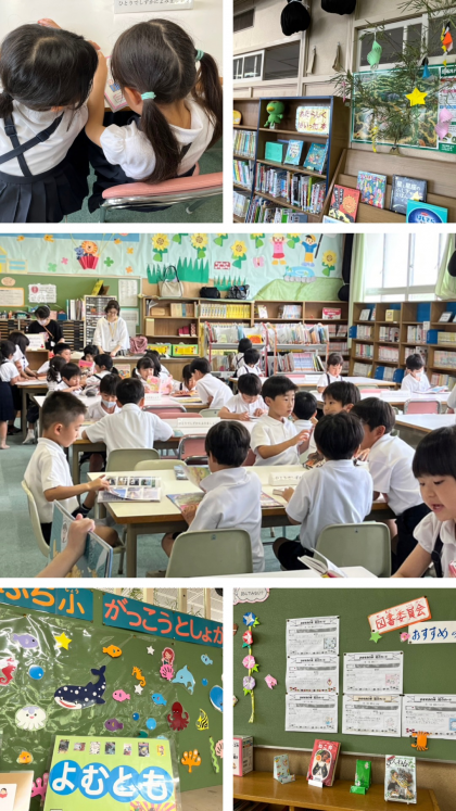 図書ボランティアの「よむとも」さんが来ている日(水曜日と金曜日)の図書室は、たくさんの子どもが来ています。