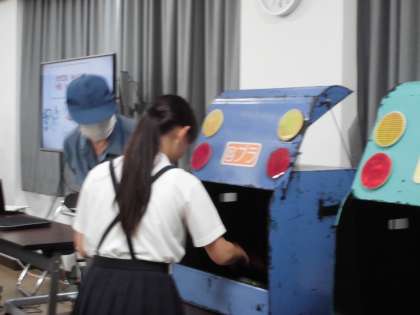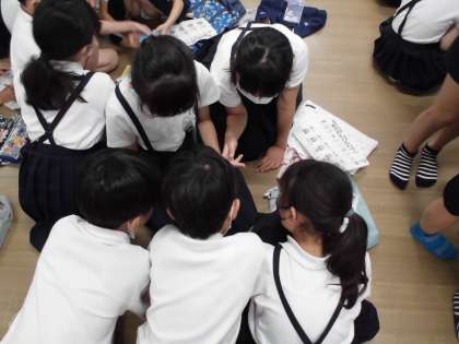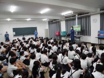 東北環境事業センターの方からごみの行方について出前授業をしていただきました。あいにく雨のためパッカー車に乗車することはできませんでしたが、クラス対抗分別ゲームでは、班に分かれてゴミの分別を考えました。大変盛り上がりました。