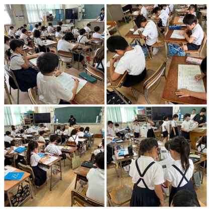 2年4組では、算数のたし算とひき算の筆算のまとめプリントをしていました。