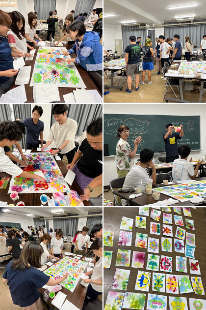教員は、子どもになりきって、不思議な色や形ができるのを楽しみながらどんどん活動をしました。最後には、お気に入りのカードを選んで、鑑賞会をしました。