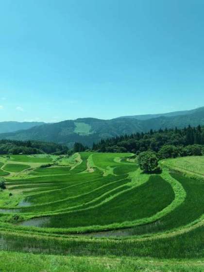 鉢伏高原に入りました。もうすぐ宿に着きます。車窓からは美しい棚田が見えました。社会科で学習した棚田です(^^)
