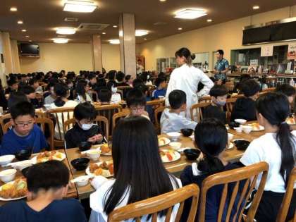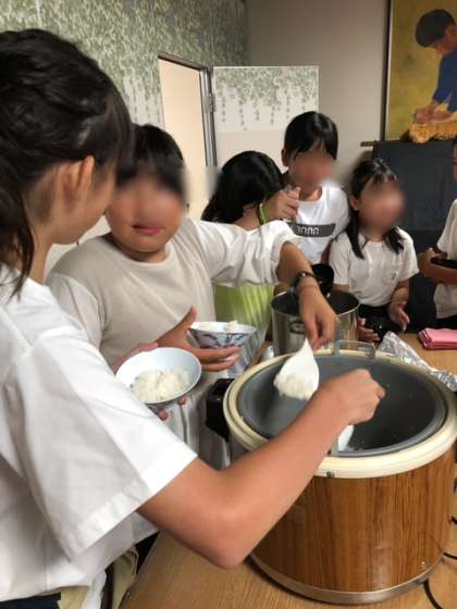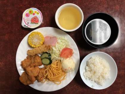晩御飯はからあげセットでした。みんな、お腹ぺこぺこだったので、おかわりをたくさんしていました!