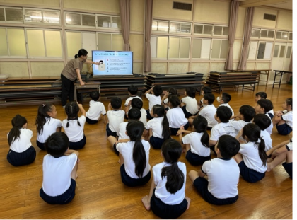2学期は、「目の健康」がテーマでした。生活の中で目を大切にするポイントを子どもたちに話しました。子どもたちは、興味をもって先生の話をよく聞いていました。