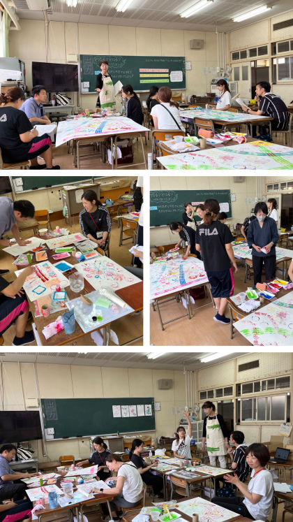 1年生は、11月に校内研究授業を予定しています。それに向けて、講師の福岡知子先生をお招きして、授業の進め方を1年関係教員が集まり、実際にやってみました。