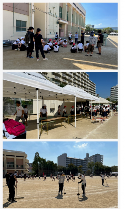 明後日の運動会本番に向けて、6年生と教職員が準備をしました。 応援団も最終練習をしました。