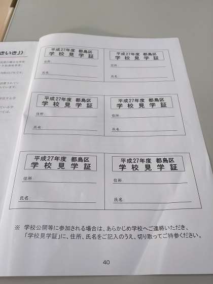 「学校見学証」をお持ちください。