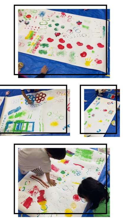 次は、今まで見たことないような大きな画用紙に同じグループの友だちとみんなでペッタン!