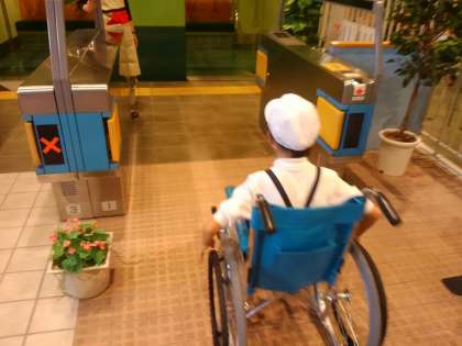 わいわいスタジオで映像や音楽の合成を体験したり、社会コーナーでは、車いすにのって電車ででかける体験をしたりしました。