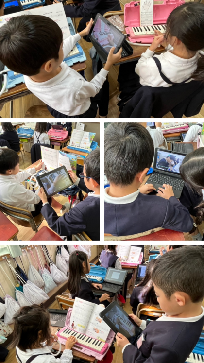 その演奏をとなりの席の子が、タブレットで録画して担任の先生に提出していました。
